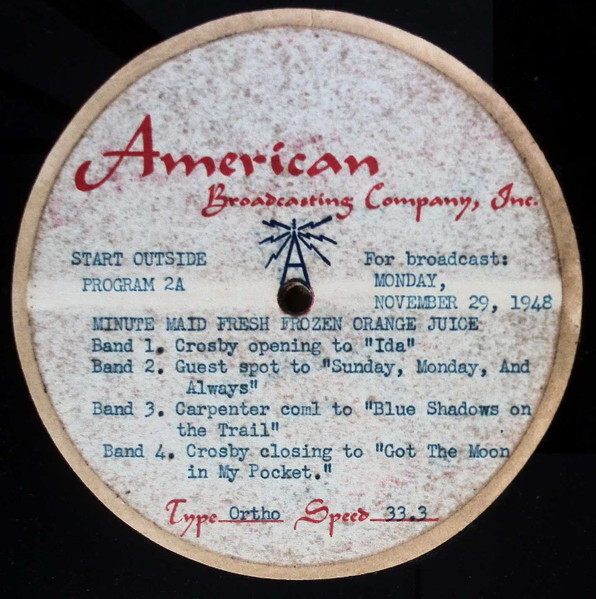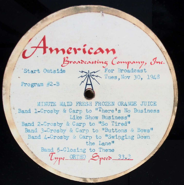 B2 Crosby & Carp To "So Tired" B3 Crosby & Carp To "Buttons & Bows"