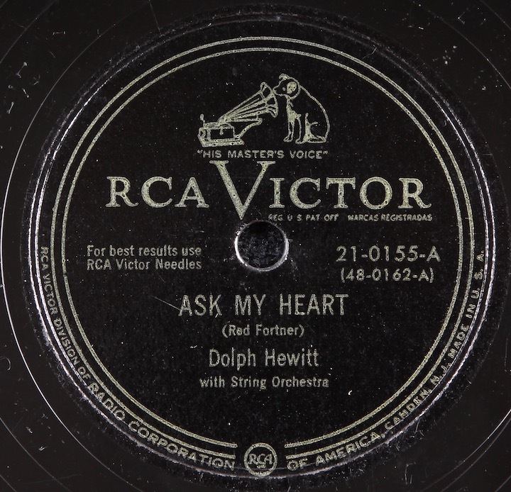 Country & Western vocalist, Dolph Hewitt. Plays loud and strong, generally quiet surface aside from a bit of light surface crackle.