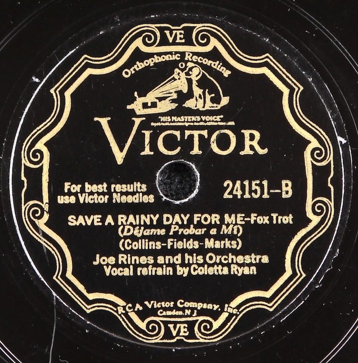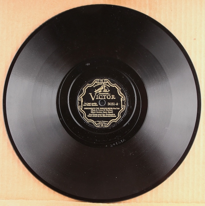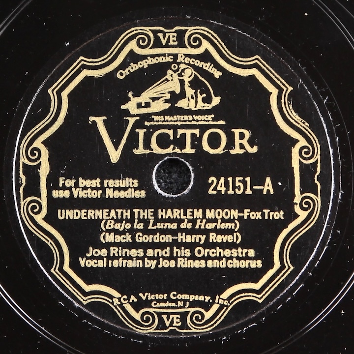 Fine Depression era dance band sides by Joe Rines and his Orchesta. Plays great, loud and strong, nice quiet surface.