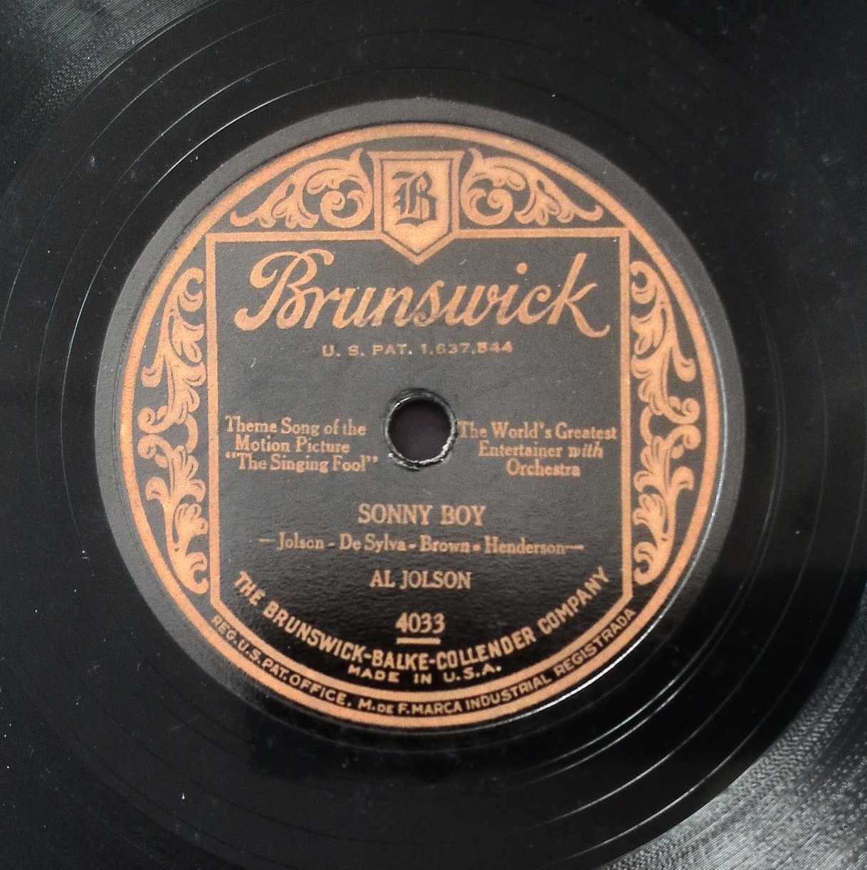 V+/V copy, looks like groove wear to Sonny Boy side, has a rim crack extending more than halfway across grooves and it shows a little daylight through it.