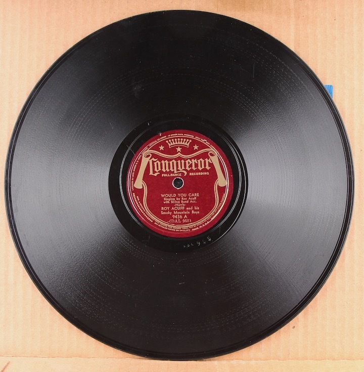 Nice Country sides by Grand Ole Opry star, Roy Acuff and his Smokey Mountain Boys. Recoded in Saginaw, Tx. Plays fine, Generally quiet surface aside from a bit of light surface noise at beginning of "What Good Will It Do?" result of a bit of light staining.